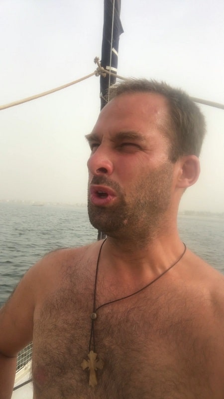 Arrivés à Mar Lodj à 10h20, nous sautons dans une charrette tirée par un âne. Sacré périple ! Nous retrouvons nos amis de Cattleya et les emmenons déjeuner chez Anne-Marie. C’est la sœur Thérèse avec qui nous avons pris contact qui nous a orientés vers elle. Elle nous prépare un délicieux Yassa de cochon, un vrai repas chrétien en ces terres musulmanes.