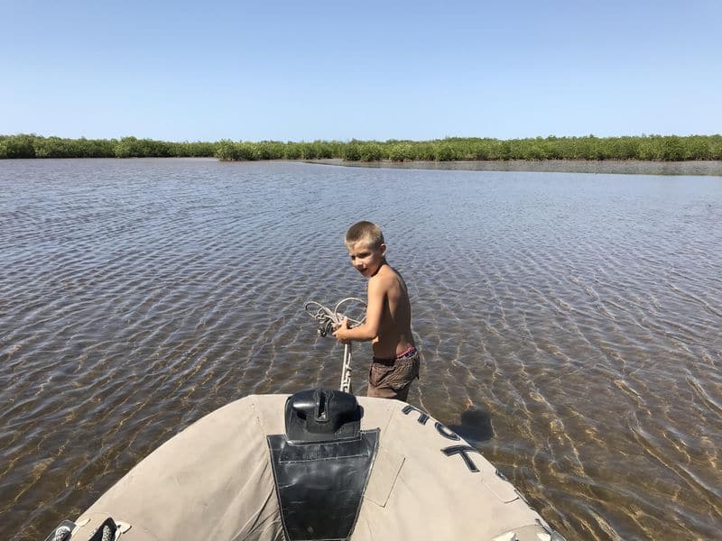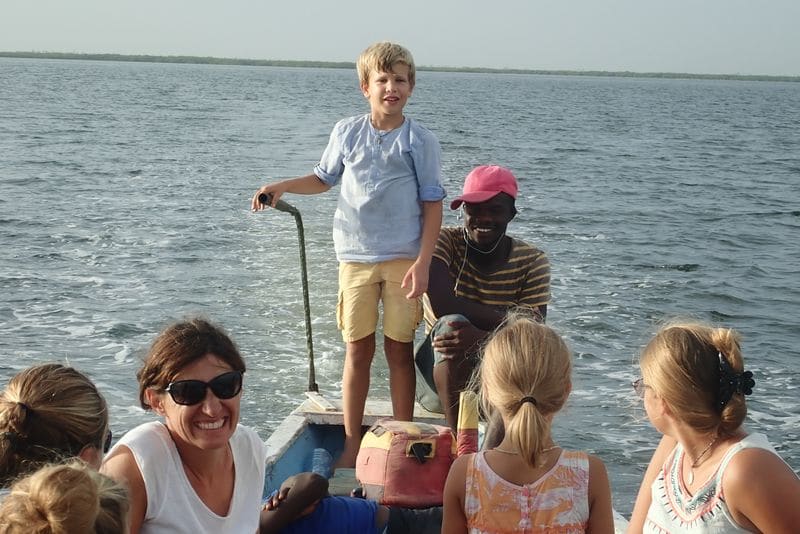 Après une semaine passée au village nous décidons quand même de nous éloigner un peu dans le bolong (petit bras de mer dans le delta). Nous sommes bien tristes de quitter les habitants de Thiallane mais riches de ces rencontres incroyables que nous ont offert cette mission VSF. Nous sommes bien conscients que c’est grâce à la générosité de nos donateurs que nous avons pu apporter tant de choses dans la classe et ainsi faire plaisir au village tout entier.