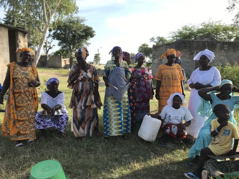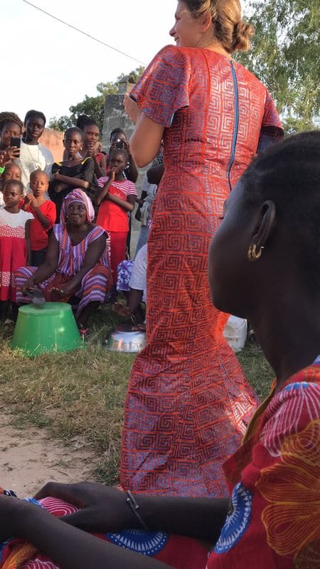 Pour plus d’aisance je me suis fait faire un porte-bébé façon sénégalaise à Dakar et je porte donc Ysance dans mon dos. Je me rends compte que cela permet un contact simple et chaleureux avec les femmes de village. Heureuses, elle me considèrent comme une vrai sénégalaise, avec un bébé dans le dos et plein d’enfants autour de moi !