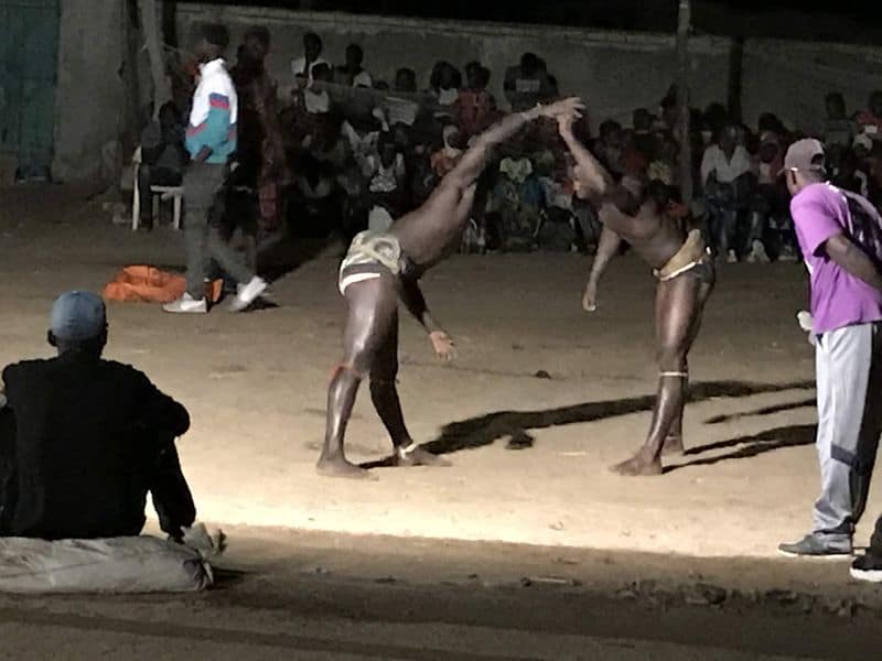 Vincent et les grands on aussi l’occasion un soir d’assister à la final du tournoi de lutte Sénégalaise à Djinda. Prévoir 3 heure de retard pour le début des festivités 😁. La lutte est le sport national au Sénagal. Il est à mi chemin avec la religion. Les rituels et les gris-gris font partie intégrante du sport. Le tout rythmé par une musique envoûtante. Cette expérience est vraiment marquante. Ils sont les seuls blancs dans l’arène, et ont vraiment l’impression d’être les spectateurs privilégiés d’une cérémonie tribale ancestrale.
