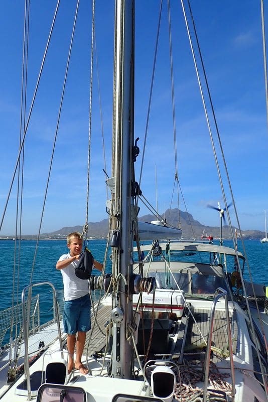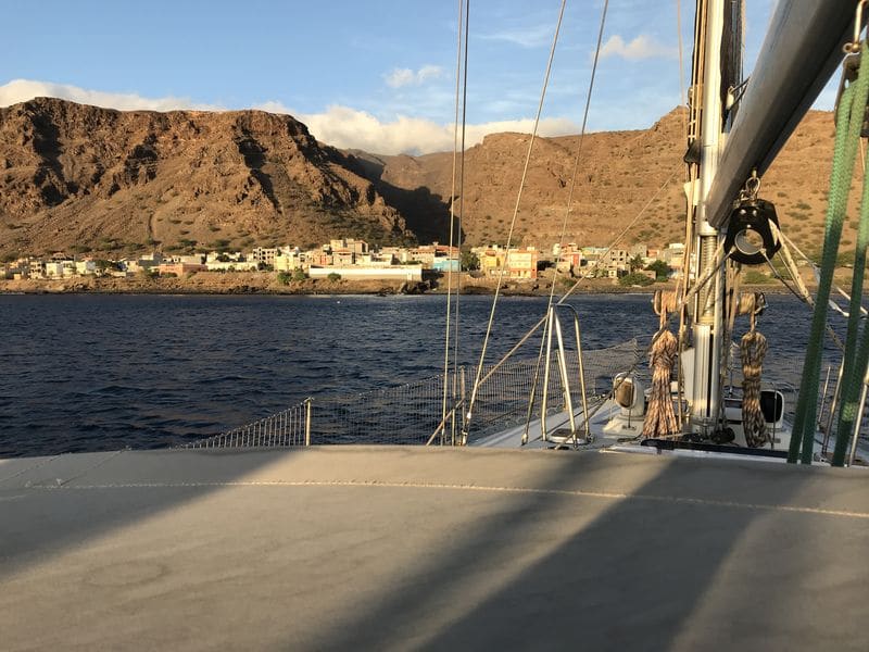 Nous surveillons la météo pour nous élancer au bon moment. Nous attendons donc patiemment sous l’île de Santo Antão 1 jours et 2 nuits. Au grand drame de la partie féminine de l’équipage, j’en profite pour une modification de coiffure radicale :). C’est de loin notre pire mouillage depuis notre départ. Mouillés par près de 30 mètres de fond, avec une houle de travers de près d’un mètre par moment, nous dansons d’un bord sur l’autre sur notre ancre.