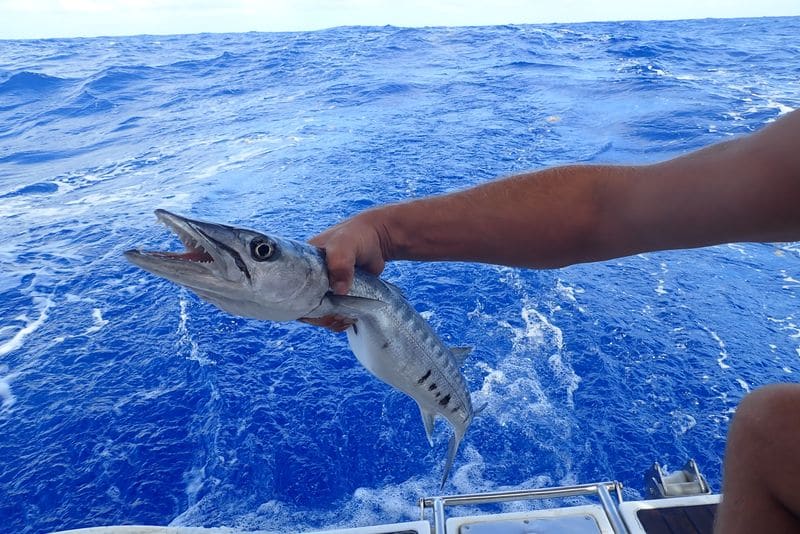 Durant la journée, les occupations oscillent entre le travail (un peu pour les grandes), lecture, pêche (Daurades, Bonites, Barracudas), playmobils ou bricolages, cuisine (dont une excellente tartiflette !!) ou sport sur la plage avant.