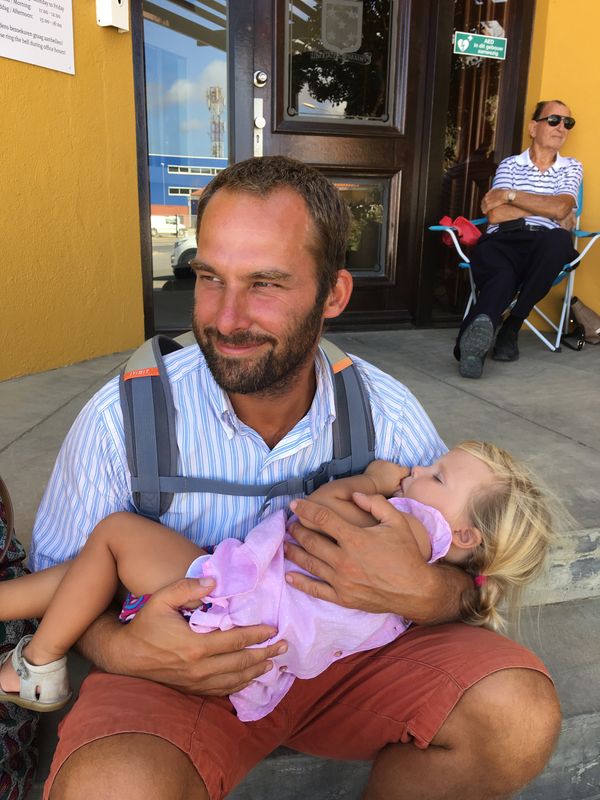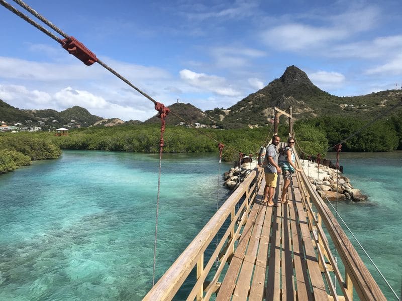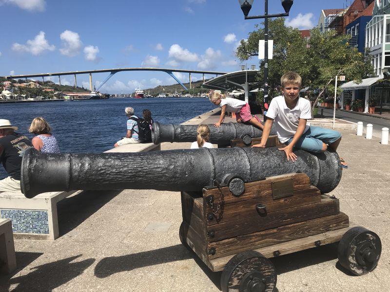 Notre première journée est quasiment entièrement employée à la corvée des formalités d’immigration et de douanes. Nous commençons par attendre plus d’une heure le bus, sensé passer toutes les 20 min, qui va nous conduire au centre-ville à une dizaine de kilomètres du port. Ensuite il nous faut trouver les bureaux de l’immigration fraîchement déménagés, remplir les neufs fiches de l’équipage puis filer à la douane sur l’autre berge du fleuve au bout du bout du quai de marchandises. Et tout ça tous ensemble puisque chaque membre d’équipage doit être présent même si personne ne regarde vraiment ! Heureusement ça nous donne l’occasion de parcourir la jolie ville en famille. Nous admirons le pont tournant et les façades colorées de cette autre ancienne colonie hollandaise. C’est amusant de retrouver l’ambiance et le savoir-faire maritime de nos voisins hollandais dans les Caraïbes !