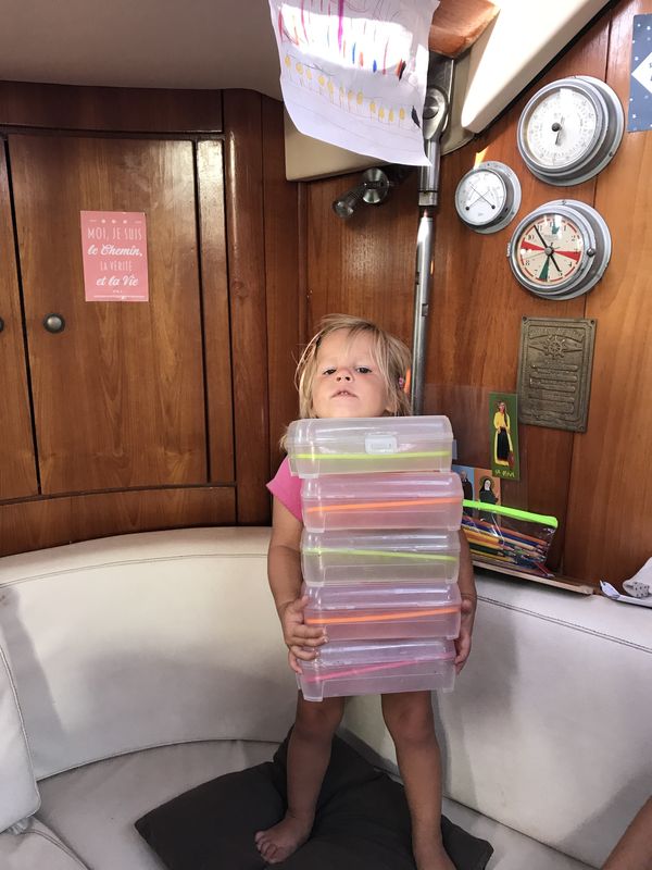 Nous parvenons quand  même à trouver un paquet de pain de mie plus gros qu’Ysance, un peu de fromage (courageux !), des crêpes de maïs périmées et des œufs qui s’avèreront pour une bonne partie pourris ! Mais enfin, il nous reste les noix de coco et la pêche que nous espérons  riche en langoustes !