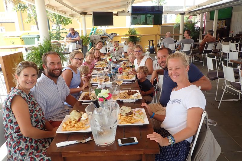 Nous louons une voiture parce que les déplacements sont vraiment fastidieux depuis Spanish Water et pour faire l’approvisionnement c’est beaucoup plus facile. Nous trouvons un énorme supermarché très bien achalandé et nous faisons un énorme plein. Ici les prix sont encore raisonnables et le choix est vaste alors que sur nos étapes à venir ces deux paramètres ne seront plus réunis.  Nous prévoyons déjà la transat retour et nous remplissons 9 caddies à ras-bord ! Nous trouvons même des fromages français pour un petit dîner comme à la maison ! Un régal !