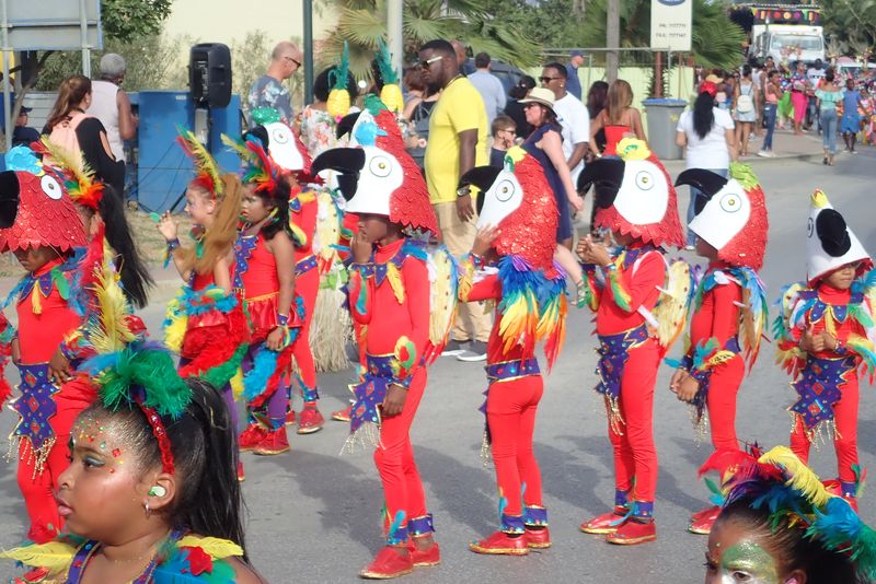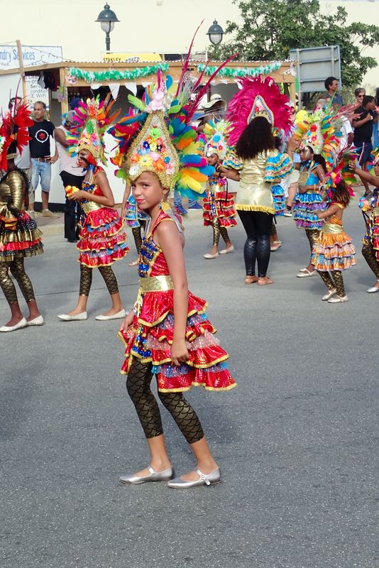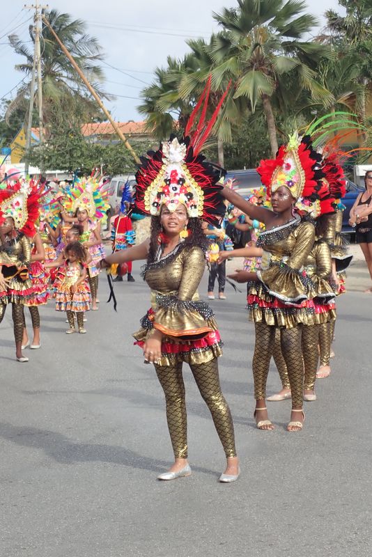 C’est le carnaval ici et nous assistons avec joie au défilé des enfants dans les rues de Bonaire. C’est un festival de costumes aux couleurs chatoyantes dans une ambiance chaleureuse sur une musique assourdissante. La population ici est très variée. On parle le hollandais ou le papiamentu, un genre d’espagnol.
