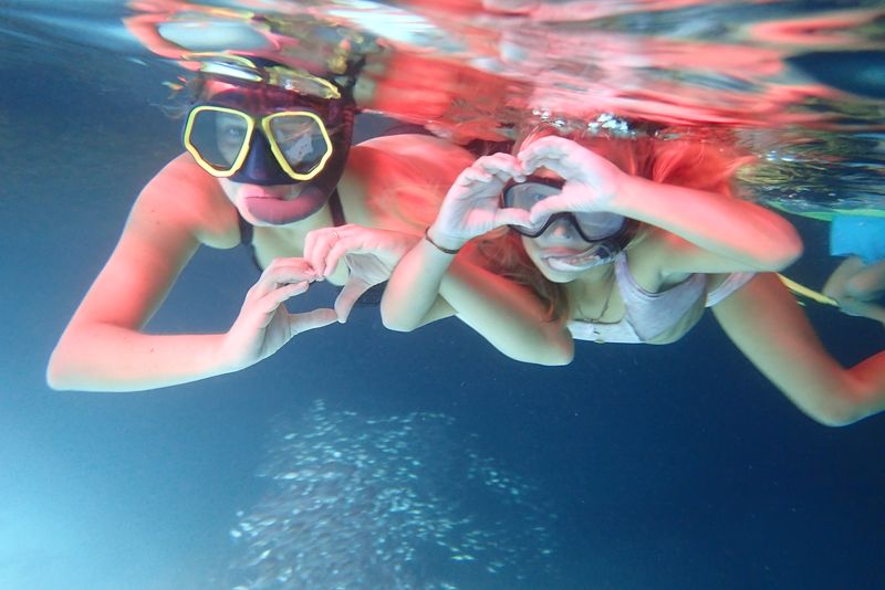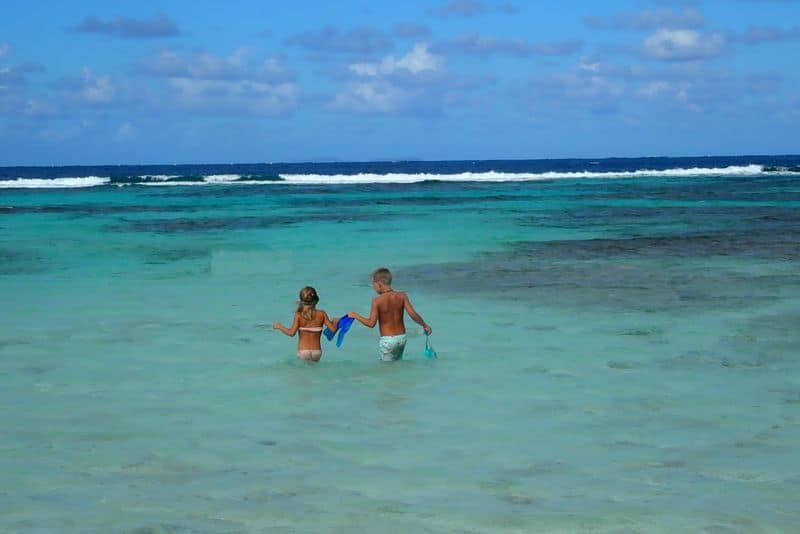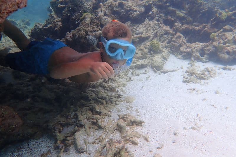 Et encore des merveilles sous l’eau sur la barrière de corail. Nous allons explorer les fonds en famille. Nous ne nous lassons pas de ce spectacle formidable de poissons variés aux couleurs chatoyantes au milieu des coraux, cerveaux de Neptune, éponges et algues  de dentelle délicates.