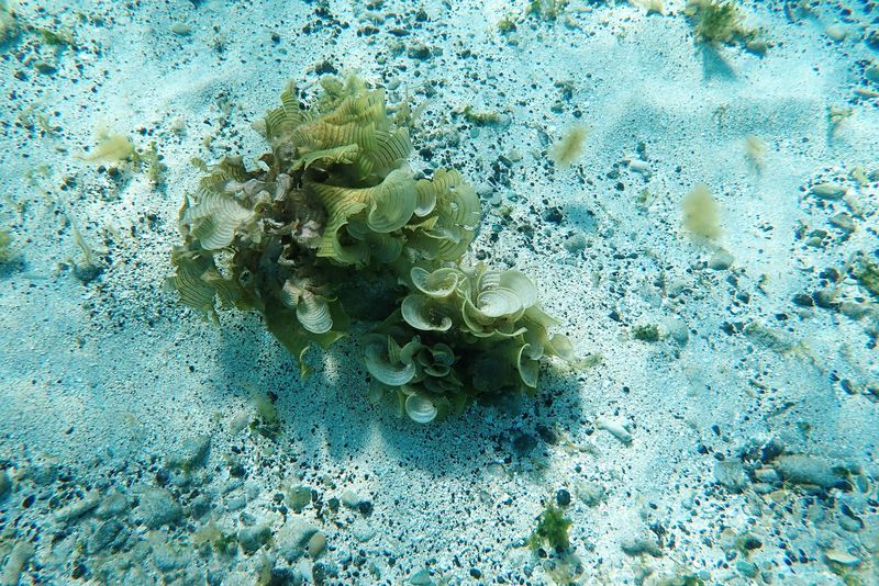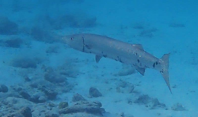 Derrière le récif, le tombant nous offre un lieu de plongée d’une incroyable richesse. Vincent rapporte 4 magnifiques tazards francs pêchés au harpon. Je les prépare en papillote et nous les faisons griller sur la plage, un régal!