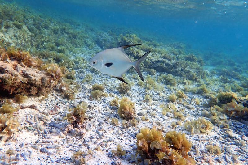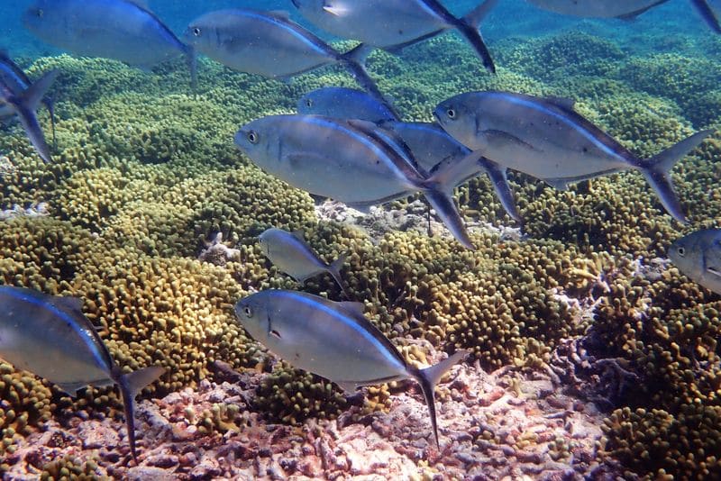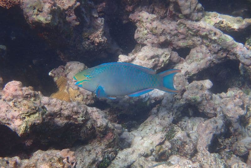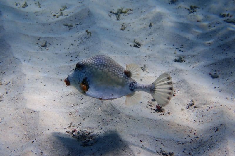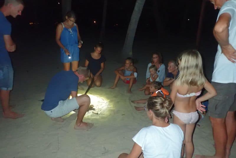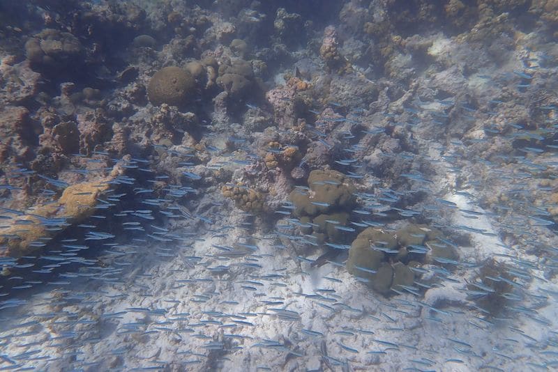 La faune marine est très nombreuse et diversifiée et nous plongeons avec bonheur pour nager avec tortues et raies et une multitude de poissons multicolores. Nous apercevons même un petit requin sur le bord de la plage mais il a filé trop vite pour que nous puissions le photographier !