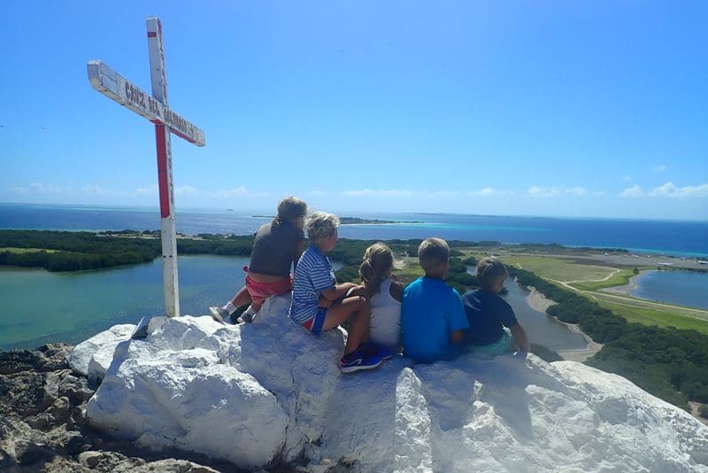 Nous prenons un peu de hauteur le dimanche en allant nous promener avec les Comalvi sur le point culminant de l’île. La vue est saisissante ! Et le drône de Gérault nous offre un point de vue encore plus  vertigineux et de belles images de nos deux familles.