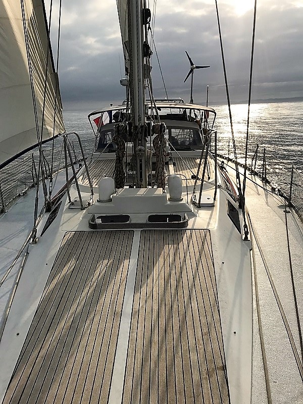 Dans l’après-midi, un petit souffle venant de derrière nous invite à lancer le spi. Nous longeons donc la « Costa del morte » et passons le cap Finisterre sous spi.