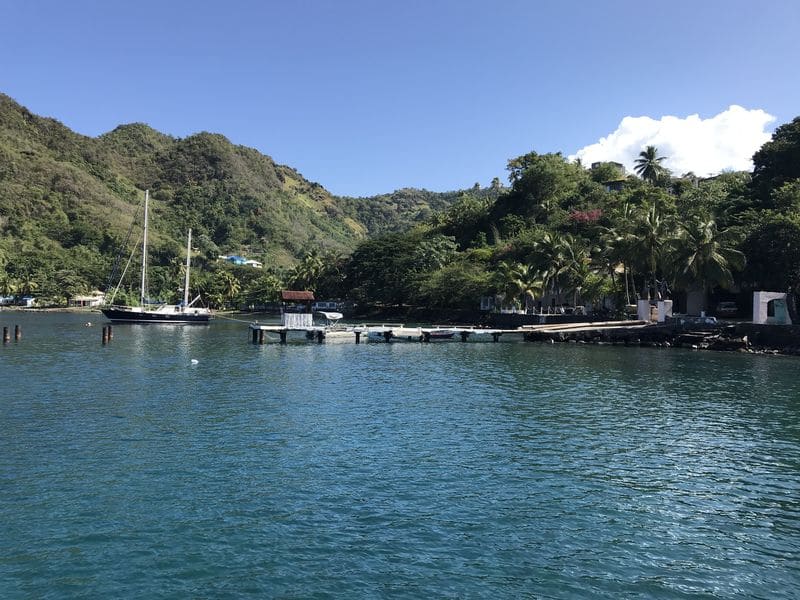 Nous descendons ensuite au sud de Saint Vincent dans le mouillage de blue lagoon. Nous y retrouvons Eldire. Radio ponton n’était pas très positive sur Saint Vincent mais nous trouvons des habitants chaleureux, prévenants et cherchant à nous aider de leur mieux. Le dimanche nous assistons à une messe gospel célébrée par l’Evêque et magnifiquement chantée par une communauté accueillante et joyeuse! Plutôt que la marina, nous mouillons devant le ponton des pêcheurs. Cela nous donne l’occasion d’assister au découpage de 2 magnifiques requins !!