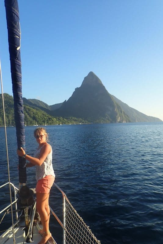 Premier arrêt à Sainte Lucie dans la Baie de la Soufrière. Nous faisons notre première rencontre avec les fameux Boy Boat qui viennent nous alpaguer plus de 10 miles avant la côte pour nous « réserver » comprenez : 1/ nous faire payer 10 $ pour nous tendre la bouée, 2/ nous emmener visiter les environs en nous demandant 3 fois le prix. Nous clamons que nous n’avons pas besoin d’aide, que notre équipage prendra très bien la bouée tout seul!