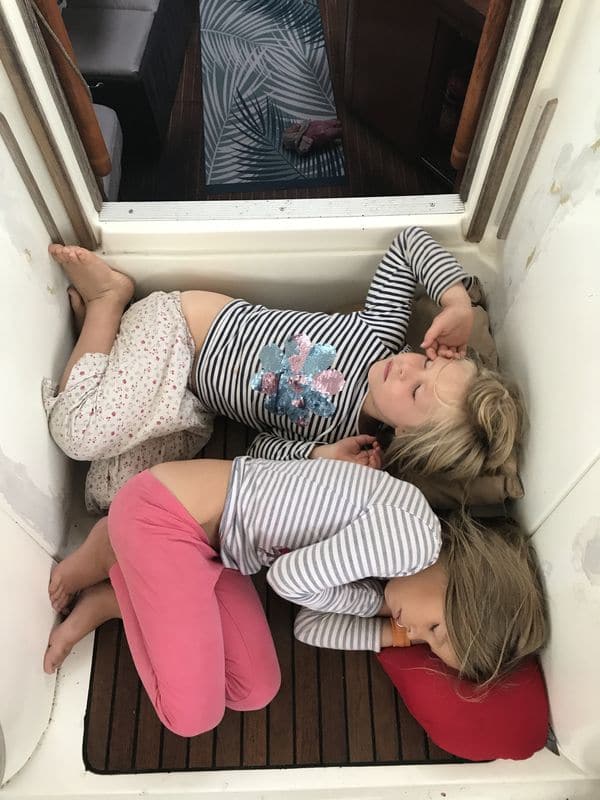 Finalement SEA YOU a bien résisté à la houle. Seule la bouteille de vin de la veille, répandue sur le tapis de la cuisine atteste de l’amplitude du roulis et de la catastrophe potentielle!
