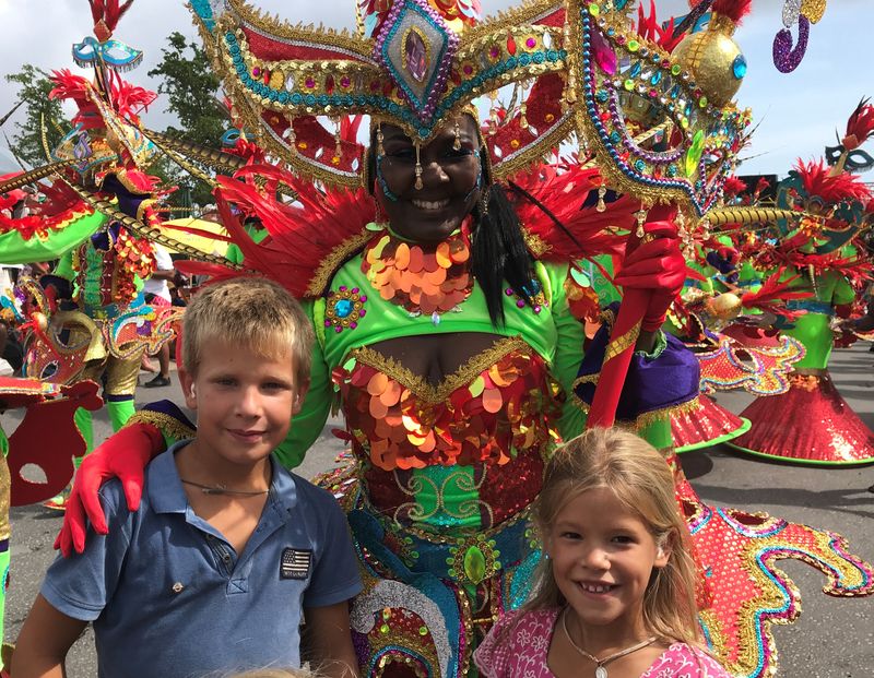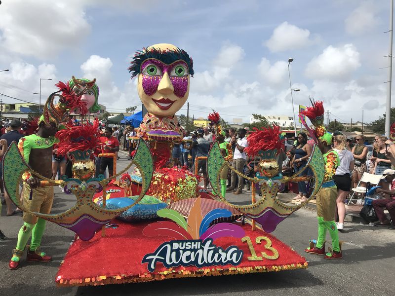 C’est le carnaval ici et nous assistons avec joie au défilé des enfants dans les rues de Bonaire. C’est un festival de costumes aux couleurs chatoyantes dans une ambiance chaleureuse sur une musique assourdissante. La population ici est très variée. On parle le hollandais ou le papiamentu, un genre d’espagnol.