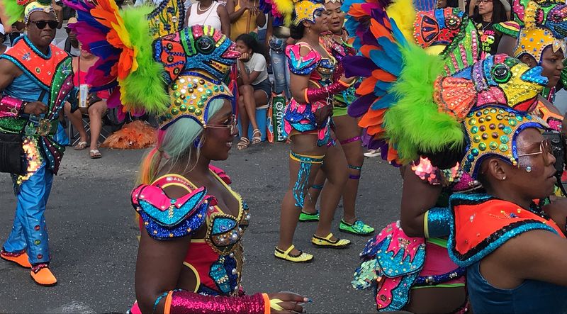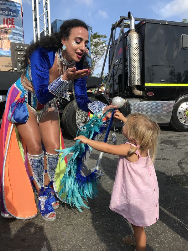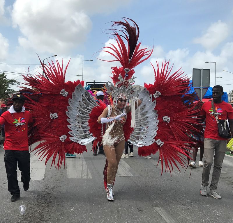Ici aussi le carnaval bat son plein. Le dimanche après-midi nous nous postons sur le trajet de la grande parade et là nous sommes émerveillés ! C’est digne de Rio ! Des plumes, des couleurs, des chars impressionnants et des costumes extravagants, le spectacle est superbe. Nous avons cependant pris soin de protéger nos oreilles avec des boulettes de coton. Ysance peut ainsi poursuivre sa sieste sans le moindre dérangement. Il faut bien avouer que si notre vue est enchantée par ce défilé nos oreilles risquent d’en payer le prix fort ! Nous ne sommes pas habitués à cette puissance sonore qui semble vraiment réjouir les habitants de Caraïbes.