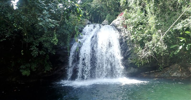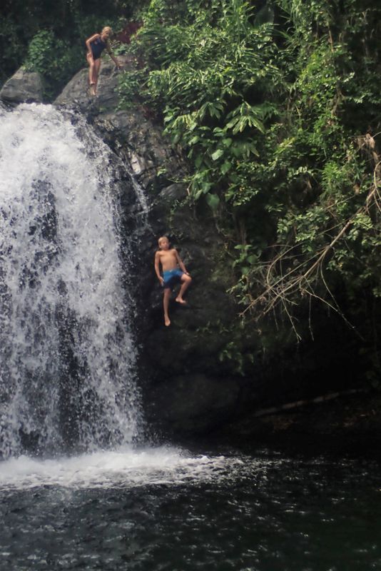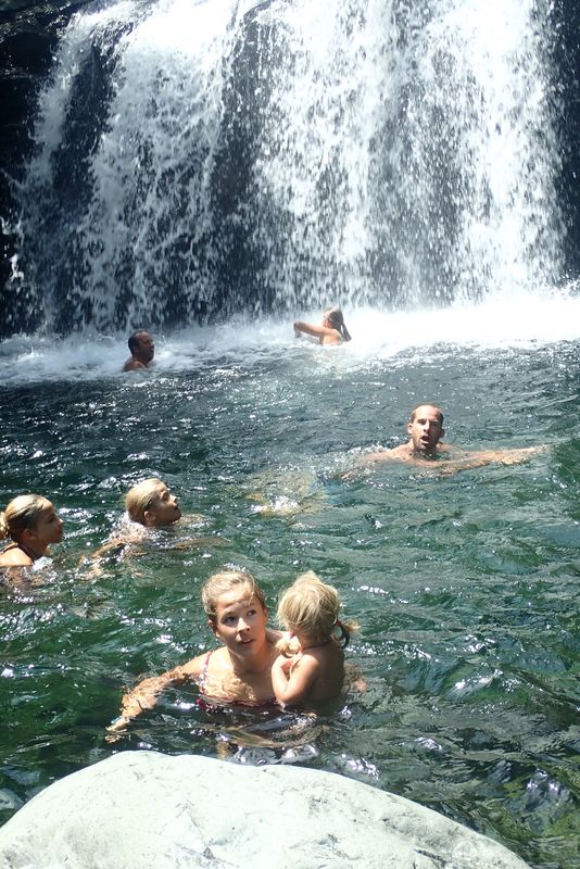 Après ce cours de jardinage, nos estomacs affamés criant famine, le père Samuel nous emmène dans une magnifique aire de pique-nique au pied d’une cascade. C’est ici que nous passons le début de l’après-midi. Dans l’eau fraîche, nous profitons d’une séance de massage par hydrothérapie. Puis les massages laissent places au sensations fortes : sauter du haut de la cascade demande une certaine confiance dans le jamaïcain qui nous montre la meilleure méthode d’effectuer cet exploit.