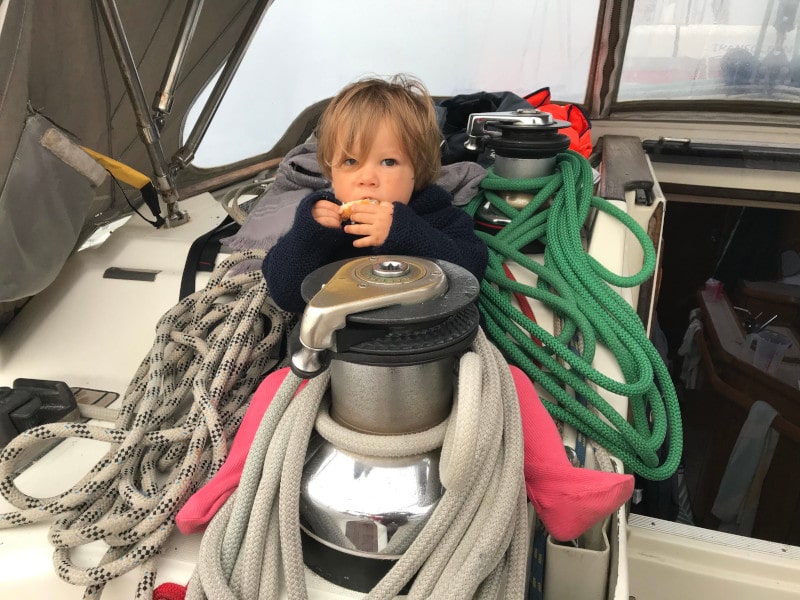 Il est bien équilibré en barre, très stable et son étrave puissante fend la mer, imperturbable. C’est de bonne augure pour les conditions difficiles que nous pourrons croiser pour la suite de notre tour de l’atlantique en famille.