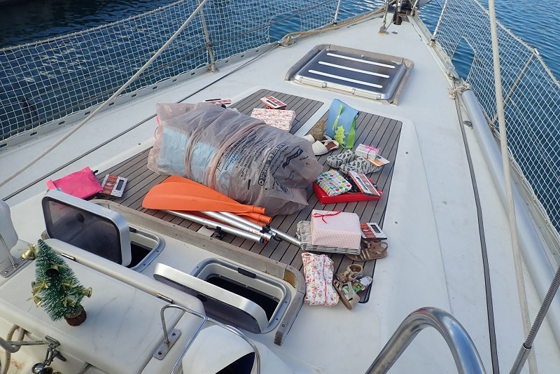 Durant la journée, les occupations oscillent entre le travail (un peu pour les grandes), lecture, pêche (Daurades, Bonites, Barracudas), playmobils ou bricolages, cuisine (dont une excellente tartiflette !!) ou sport sur la plage avant.