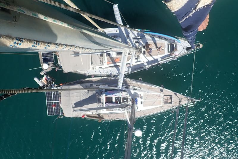 Notre tansat commence à Mindelo par une minutieuse préparation de SEA YOU. Tout l’équipage met la main à la patte. Contrôle des parties immergées, du secteur de barre, du pilote automatique, des pompes de fond de cale, du gréement, des voiles. Chaque poulie, mousqueton, manille, est contrôlé, graissé, sécurisé. Olivia s’occupe activement à remplir les soutes de conserves, de féculents en grande quantité, et d’un maximum de produits frais. Révision complète du moteur, pleins d’eau et de gasoil. Le bateau et l’équipage est fin prêt pour le départ. Jean-François et Nathalie des amis expérimentés qui sont par hasard de passage à Mindelo à ce moment-là nous prodiguent conseils et astuces aussi bien pour la préparation que pour la transat elle-même. Merci beaucoup à tout les deux, nous sommes partis grâce à vous très sereinement.