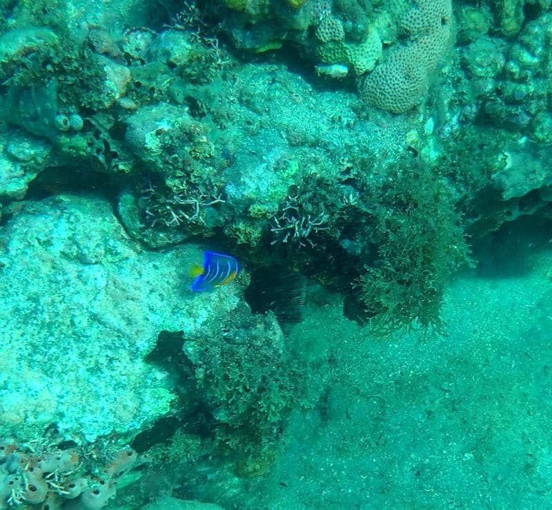 A quelques jours de l’arrivée, nous commençons à croiser des bancs de sargasses. Une nuit vers 3h du matin, le bateau est tellement chargé de ces algues coincées sous la coque que nous devons arrêter le bateau et faire une marche arrière pour nous dégager.